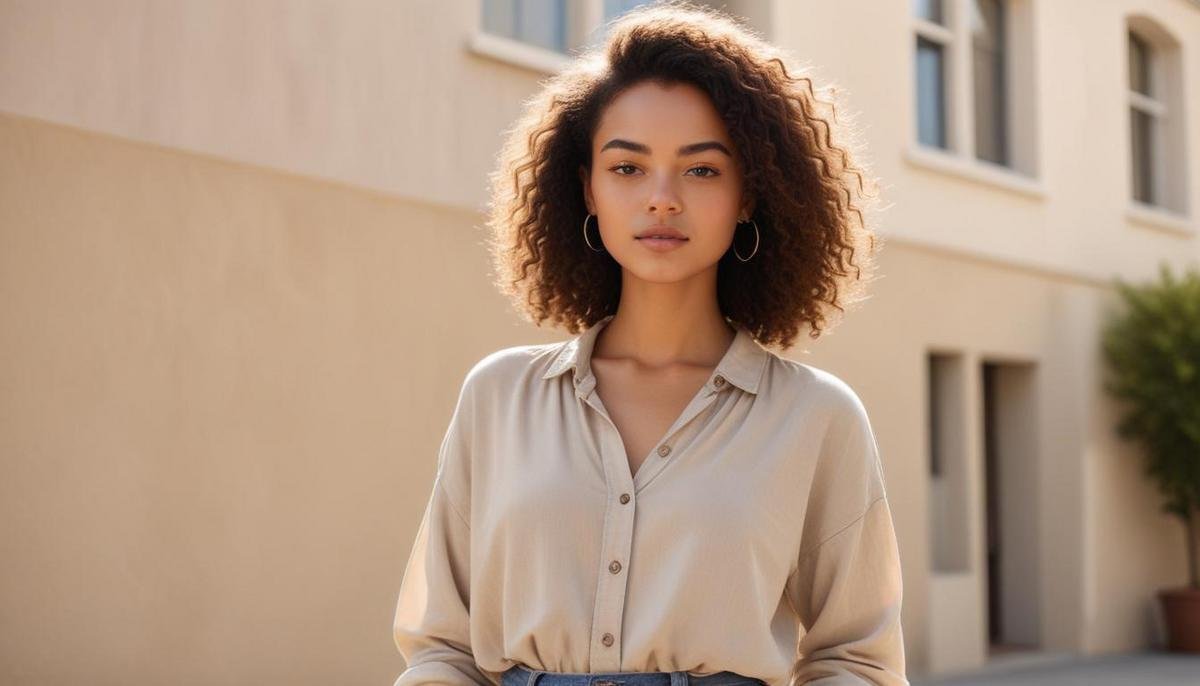 Acessórios simples e maquiagem leve valorizam o visual, mantendo um equilíbrio harmonioso e natural para o dia a dia.
